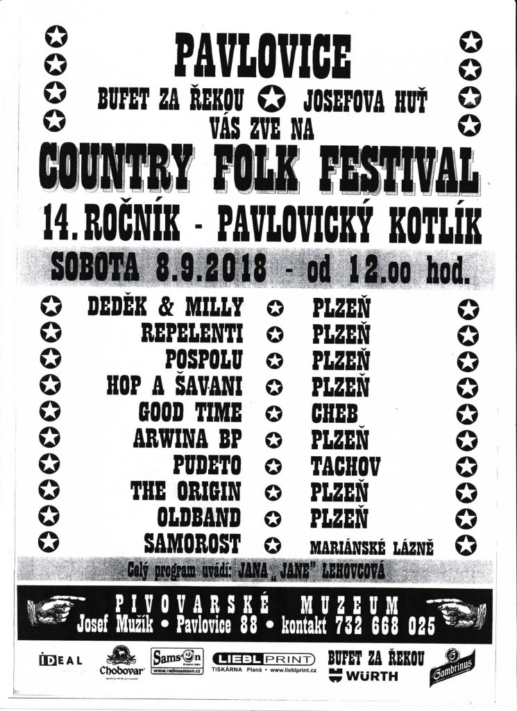 Pavlovice pořádají 14.ročník countryfolk festivalu v bufetu za řekou