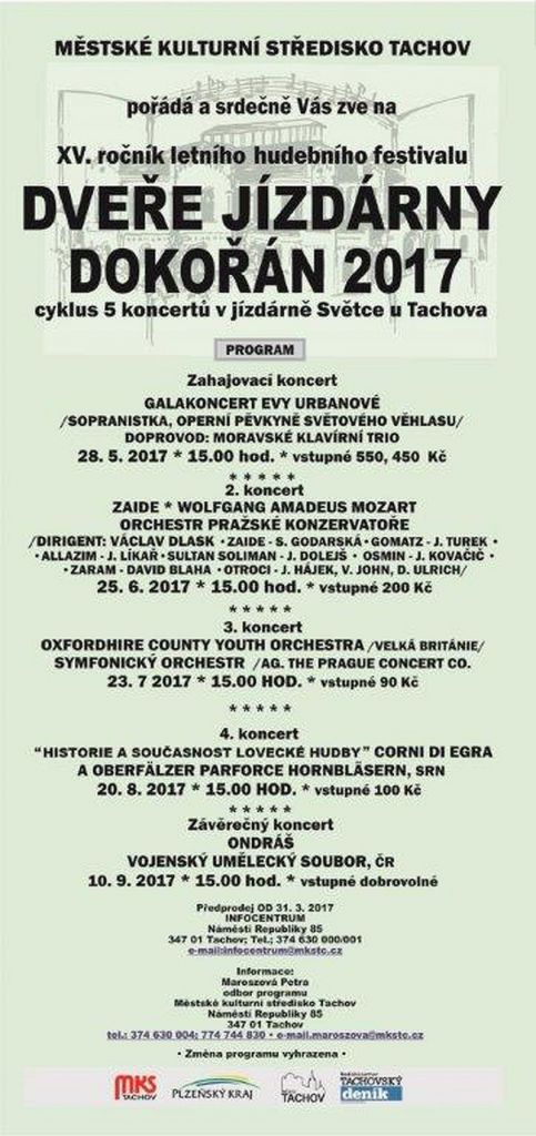 XV. ročník letního hudebního festivalu CYKLUS 5 KONCERTŮ V JÍZDÁRNĚ SVĚTCE U TACHOVA